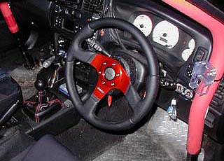 久し振り今日はみらげの作業です♪先日誕生日プレゼント(自分に)ということで購入したMOMOレース、13000円もするエアバックキャンセラーつきのボスなんか店で買えるか!!って事で早速オークションで落札。新古品の上エアバックキャンセラー付きでエボ6用に買ったって言う粋な逸品を7250円で落札、対応も迅速で間に合わないかと思ったのですがちゃんと週末には間に合ったので取り付けと相成りました。350のMOMOレースは疲のセリカ&インプで使い易さ実証済みだったのですが、いやぁ、やっぱ良いですね…これに憧れて純正MOMOステの中央を赤く塗ったって事もあり色合いもかっこよくて文句無し!!純正の10:10の位置から9:15の位置に握る場所が変ったんでしばらくは違和感あるかもしれませんが些細な事ですし^^