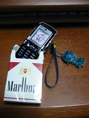 ■いやぁ、マジで小さい。液晶画面にいたっては今まで使っていたD505iのインスピレーションウィンドウ、世に言う背面ディスプレイと同サイズ・同色数と言う事で綺麗さでは劣りますし、前述のようにiアプリは使えない上に何よりも赤外線通信が出来ないという最大の弱点はありますが、それを補うほどに小さい上にカッコイイ…自分が常に持ち歩き使うって事では車と同様、デザインが気に入るって言うのは非常に重要なファクターなのです。 で、驚く事に異常に小さいくせに以外に操作性が良い。メール打つのにも押し間違えとかは気にする必要がありません。スピーカーの位置に合わせるとマイクの位置が口からかなり離れる事になるのですが音質に関してもまったく問題無いようです。 いやぁ、非常に気に入りました^^