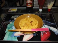 ●金欠病がマックスハートな日々が続いていることも有り極力外食に頼らないような生活を心がけておるのですが、もともとほとんど夕食を食わない人間なんで忙しい朝と会社で食う昼で結局は自炊はほとんどしません。とりあえず写真(上)はもっとも手軽なメニューです。ご飯に卵を混ぜて焼くだけ。お好みでケチャップやソース・マヨネーズなどをかけてお召し上がりください。