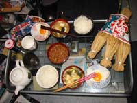 ●下は今晩のメニューです。疲が諸用で来ていたこともあって二人分です。玉子焼きが大半だったので久しぶりに目玉焼き。味噌汁は冷蔵庫に眠っていた豆腐と会社の機械の試験で使ったねぎを投入。そして何より納豆です!!見てください、このこれでもかってくらい納豆な納豆を!!わらに入っている本物の中の本物、まさにキングオブ納豆です!どれほど臭い物か期待していたのですが…やっぱくせぇ(゜∀゜) とはいえ予想よりは控えめな感じ。まぁ、納豆の臭いが嫌いな人には絶対に食えませんな。解りづらいですが真ん中の器に入っているのは納豆です。疲が10分近くかき混ぜ続けた一品です。 師匠がお土産に持って来てくれたものですが、「大豆ゆでて突っ込んで置けば自家製納豆が作れるぞ」だそうで。 個人的には冷蔵庫の裏とかが常に一定の温度があってお勧めです。でもゴキブリさんには要注意だ!!