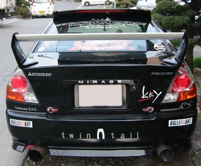 ●2001年の2月3日に塗装・装着したエボ4ウィング、5年2ヶ月にわたりお世話になりました。これからはますます車種不明です。記念に過去のウィングも紹介しておきます。