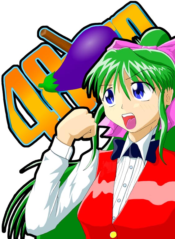 髪の緑色にリボンのピンク、制服の赤の組み合わせが。