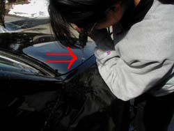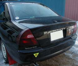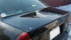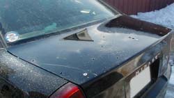 | とりあえず純正の羽は取っちゃいましょう。 ネジを3つはずしてえいやッ!っと力を込めればいやんな音を立てて外れます。両サイドほぼ全面が両面テープと思われます。思いきりが大切です。 う〜ん、クーペに羽無しは良し悪しだなぁ… |