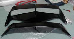 | 上が色塗り済みのエボWウィング 下が純正アスティウィングです。 違いますねぇ… ちなみに色塗りの様子は写真に撮っていません。(忘れてた) |
