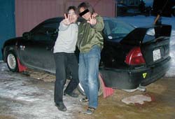 | で、完成です。既に外は真っ暗です。 記念に写真でも撮っておきましょう。 ちなみに右が今回手伝ってくれたHMT(通称"疲")です。 とってもサンクス!! |