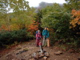 そうこうしてるうちに外は明るくなり、雨も小降りになってきました。停滞を決定した時点で栂海新道はもう諦めざるを得なかったんですが、このまま停滞してるのももったいないなあということで、僕もまだ通ったことのない鉱山道から蓮華温泉に下ろうということになりました。「鉱山道は利用者少なく、大雨時などは利用不可」なんて書いてあったので余計に行ってみたくなりました。しかし意外にもこの道は変化があって面白く、紅葉もちょうど見頃でなかなか良かったんです。