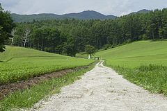 相変わらずスローパンクが続くので、明るい所でタイヤを良く調べたら小さな針金が刺さっていた。もっと早く気づいていれば、というよりこの古タイヤをもっと早く交換していれば、と思いつつ最後の修理。ここから暑さに苦しみつつ、県道31号で大町市の中山高原に登る。スキー場は閉鎖されてしまったが、朝ドラ「おひさま」のロケ地として一躍脚光を浴びている。鹿の食害によって菜の花は全滅したらしいが、いまは蕎麦の緑がしっかり根付き、期待以上に見応えがあった。