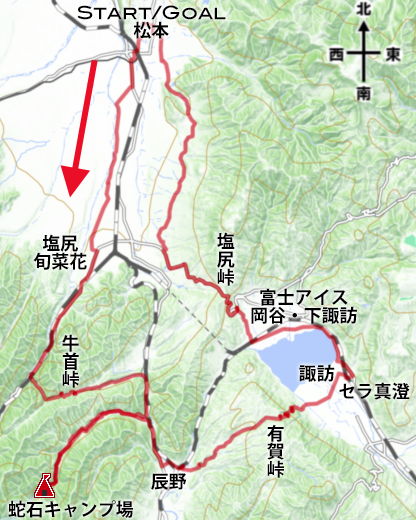 たっぷり寝たー。朝食後もだらだらと、もう一度蛇石の観察をしてから出撃する。口笛で警戒しつつ無事に山域を脱出。辰野駅前で日焼け止めを塗ってから、西の有賀(あるが)峠に登る。ここも近場の峠にしては初めてだが、特徴も展望も無いわ。諏訪市街に入って少々迷いつつ宮坂醸造「セラ真澄」に到着。小瓶のKUROとKAYAを買い、旅の土産とする。辰野や諏訪はサイクルスタンドのある店が多くて助かるわ。