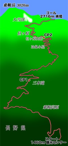 第2チェックポイント通過も下限ギリギリの57分弱。やばいな。ボトルの塩水は尽き、アクエリアスを受け取る。残り距離表示を見てペースダウンに気をつけつつハイマツ帯の位ヶ原に入ると、目前に乗鞍岳剣ヶ峰が姿を現す。思わず何か声が出た。来てよかったー! 追い抜いた悪魔おじさんさんに「ランドナーがんばれ」と声を掛けて頂き、もう一度強気を奮い立たせる。大雪渓から先はかなり久々に走る道。周囲のサイクリングに飲まれないようにしながらライバルに喰らいつき、追い抜き、間に合ってくれえと祈るような気持ちで残り1km。道は狭いし下山待機列もあるからさらに狭い。同クラスの方が右から強気に行って道を作ってくれるので、なるべく付いていく。残り300m、200m、100m。離されたが、こちらも残ってない力を振り絞る。標高2,716mの県境フィニッシュ! 手元の時計グロスで1:19'49"…自己ベストに遠く及ばずバンザイする程ではないが、積年の目標はぎりぎりクリアして、ホッと安心のウイニングラン。