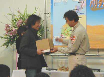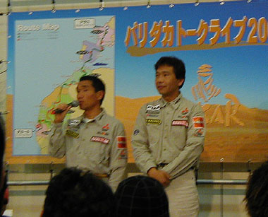 さて、報告会ですがこれに行った本当の理由は今回優勝した増岡浩選手ではなかったり(笑) ワシが三菱で好きなのはなんと言ってもみらみでサインをもらってきた木全巌総監督と今年54歳になるにもかかわらず現役でパリダカを走る篠塚健次郎選手なのです^^何か渋好みだねぇ〜とか言われそうなのですが…多分そうなのでしょう^^; でも自分の好きな人間と間近に会えるってうれしいですよ!!記念撮影(集合写真だけど^^;)の時に隙を見て握手してもらってきました^^サインもらえなかったのは残念だったなぁ…