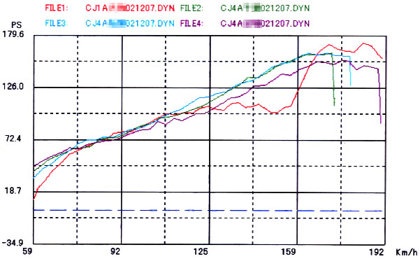 そんな訳でこの後出てきたすべてを「まじめまじめまじめ」にチューニングした(基本的な精度の向上を目指した・・てことかな?)エンジンを載せたCA4Aが176PSの17.1kgmを叩き出して最高記録。未だなんちゃってRS(エンジンはノーマルMIVECだからね…)の我が愛車はぁゃιぃグラフを残しつつ172.3PS/7961rpm16.6kgm/7388rpmと言う素晴らしい記録を残して雨の千葉県を後にしましたとさ。(千奈美にRSはカタログ値は175PS/7750rpmと17.0kgm/7000rpmです)