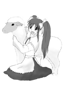 で、なにやら会社の関係で組合紙にイラストを描いてくれと。マジですか?!断る訳にも行かず引き受けたのですが…去年は馬年だからポニーテールと言う事で由紀ちゃん描いた訳ですが…今年は羊さんです。引っ掛けは思いつかなかったのでそれっぽいものを登場させる事に。で、改めて羊の写真をネットで検索したわけですが… あの丸まった角は一般的ではないですね^^; って事で子羊描いてそれを横から抱きしめる女の子… 誰にしよう?とりあえず目の前にあった小麦ちゃんのパッケージを見ながら中原さんを描いてみる……誰だ?これは? あと髪の毛にボリュームが無いとバランスがとりにくい…って事でさ○らたんに決定(何故?)