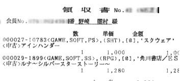そこら辺うろうろして、帰りにとあるゲームショップを覗くと、おぉ!ルナがあるではないか!むぅ!アインハンダーもこの値段なら!って事で購入しました。(来月から金無いのに…) ん?この店ではレシートではなく領収書の形で出すのか…むぅ!これは!