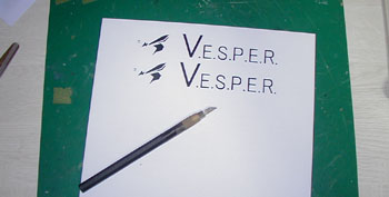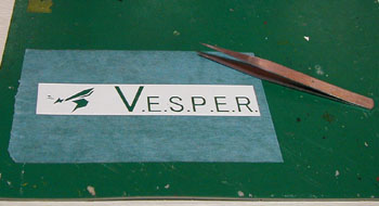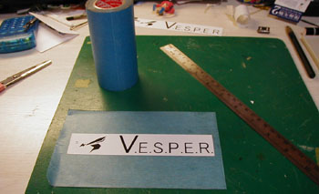 | マスキングテープをカッターボードの上に貼り付け、その上に先ほどの粘着シートに印刷したロゴを貼り付けます。 ワシは見ての通りいきなりボードに貼り付けていますが、お勧めはガムテープを綺麗に並べて張ったその上に張る方法です。 こうするとマスキングテープの粘着力の劣化を極力抑えられるからです。 ここまで来れば判るかと思いますが、先ほど印刷したものに沿ってカッターで切っていくことにより目的のロゴにカッティングシートを綺麗に切る事が出来るのです。 この方法はステッカー自作にも応用できる技ですので覚えておくと非常に便利です。 実はここまで細かいロゴ(特に左のマーク)は後で大変苦労します(;´Д`) |