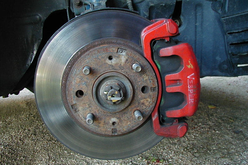 | 塗料の選択 | 私は本体からロゴ、全ての塗料にキャリパー用塗料をお勧めいたします。一番心配されがちな耐熱性ですが、正直、これは意外にも普通の塗料でもかなり耐えるようです。あまり明るい色は焼けたときの変色が激しいかもしれませんが、スポーツ走行のようなハードな使い方をしなければ問題は無いようです。 一番の問題はブレーキクリーナーです。大抵のキャリパー塗料は焼付けまで行なうとクリーナーごときにはびくともしないのですが、一般的に売っている塗料はこれに負ける可能性を秘めています。工場なんかに車検に出した時に強力なクリーナー使われると悲しい事になる可能性が非常に高いです。 上で書いたとおり、ワシはロゴ部分に普通の対候・耐熱塗料を使っていたのでクリーナーの1撃でこの有様です。工場の方が気付いてすぐ止めたのでこの程度ですんでいますが… 赤の塗料はキャリパー用なので全く落ちてはいませんが、ロゴを消す気にはなれないのでワシのキャリパーはなかなか綺麗に出来ないのです… 1色に塗装したのならまた塗ればいい事ですが、今回のような細かな作業をした場合は修復が本当に手間になります。 ただし、全ての塗料が駄目だとは限りませんし、全てのブレーキクリーナーが塗装を犯すとは限りません。 |