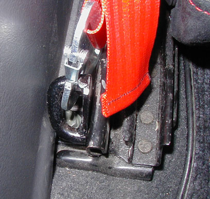 | こんな感じで固定しています。 後部座席のシートベルトを止めているボルトを外してベルト付属のボルトで共締めすれば後ろはOK。これが両肩をホールドします。 ワンタッチで運転席部のベルトとは外れるので後ろの席もちゃんと使えます。 腰を支えるベルト、これは運転席側は付属のアイボルトを運転席用シートベルトの下のボルトと交換すればOKなのですが助手席側は付属のボルトがつくところが有りませんでした。 そこで… |