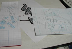| パソコン上でデザインしておくとここが楽です。 左右反転させたものを印刷し、カーボン紙でカッティングシートの裏に写します。 赤ペンでなぞると良い感じです。 |